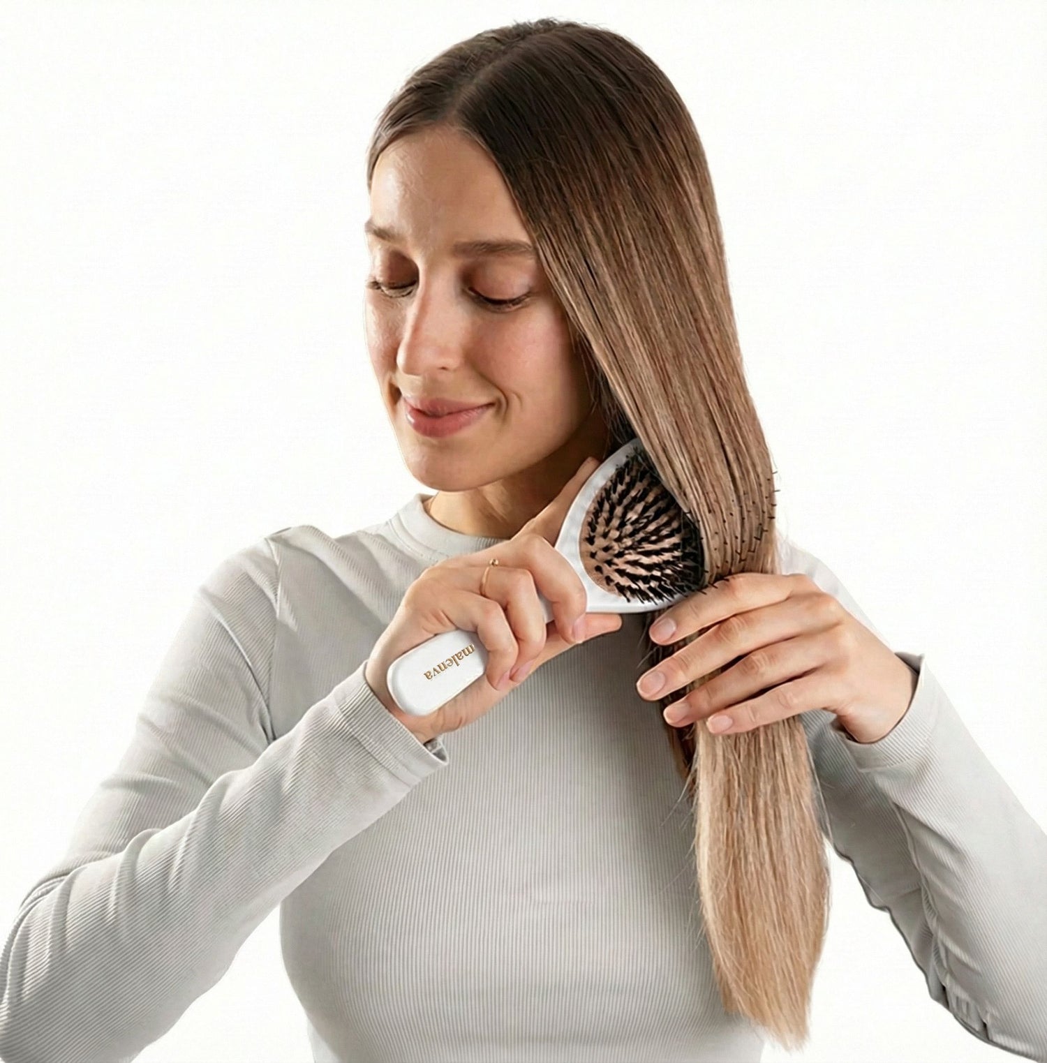My winter hair usually flies everywhere, but this brush keeps it grounded and smooth. The natural bristles really help tame the static electricity and flyaways.